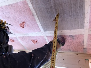 断熱材を隙間無く吹き込んでいきます。