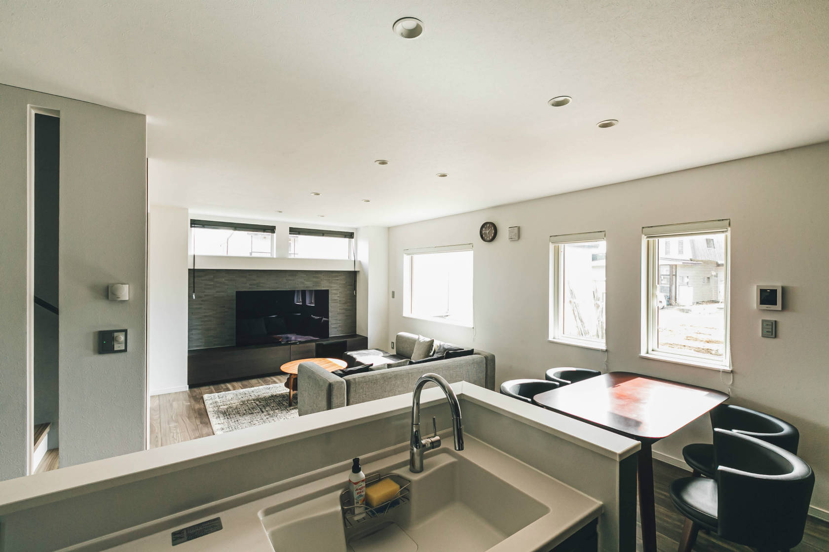 いろいろな家を見た上で対面キッチンよりも動線が良さそうだったので、キッチンとダイニングは横並びにしました。